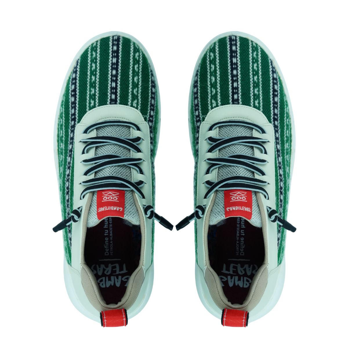 Cada par es una declaración de principios: moda ética, producción local y diseño con identidad. La suela gruesa tipo chunky ofrece comodidad y estilo para el día a día, mientras que los detalles en verde y los cordones bicolor añaden carácter y personalidad.