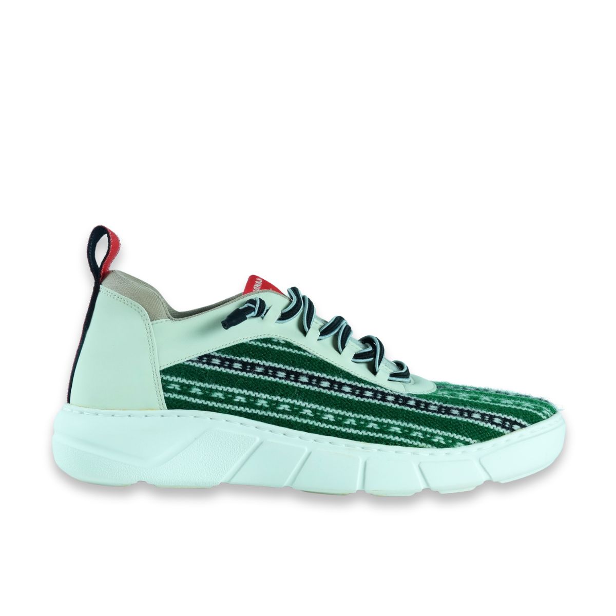 Diseñadas en La Mancha y tejidas con historia, estas zapatillas combinan piel de alta calidad con lana merina 100% natural, hilada artesanalmente. Su colorido tejido refleja el alma de lo auténtico, inspirándose en patrones tradicionales reinterpretados con un enfoque urbano.